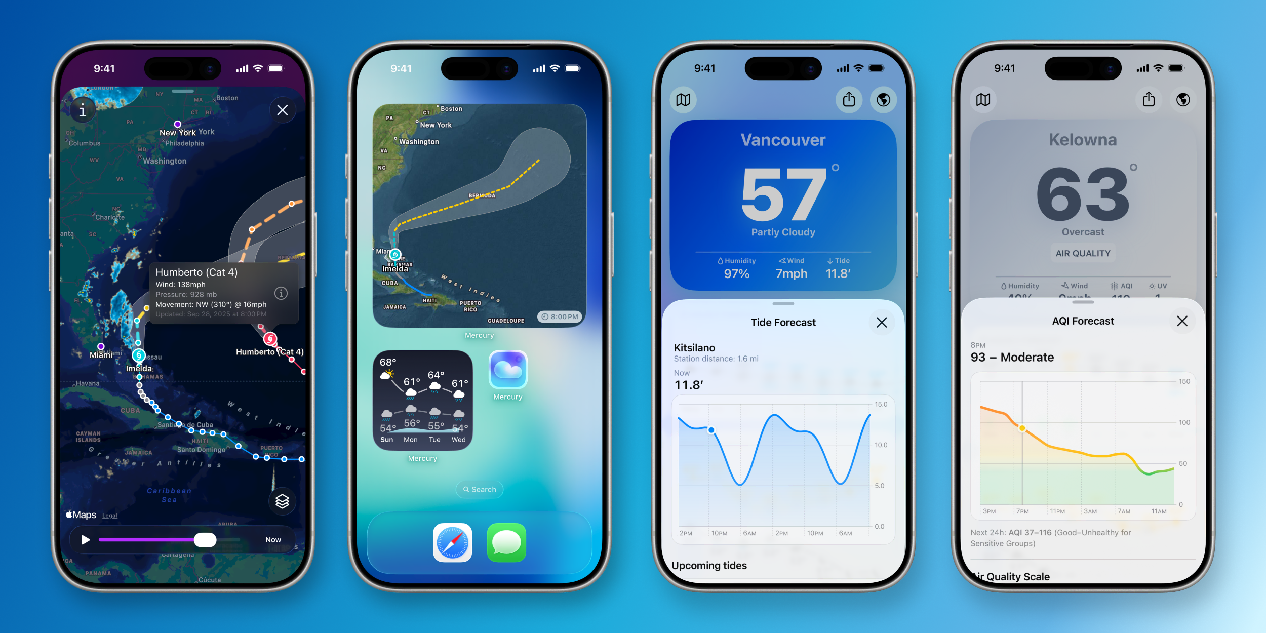 This release introduces hurricane tracking, along with new daily weather details, including 24-hour forecasts for air quality, UV, and 48-hour tide charts.